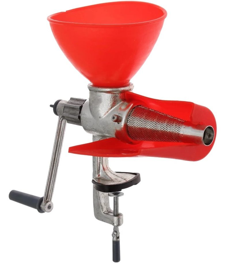 ایک سادہ سستی ڈیوائس آپ کو ٹماٹروں کے ساتھ ساتھ دیگر سبزیوں اور پھلوں سے بھی جلدی سے مشروب تیار کرنے کی اجازت دے گی، بشمول ھٹی پھل۔ غیر جانبدار دھات اور پلاسٹک سے بنا ہے، جو تیار شدہ مصنوعات کے ذائقہ کو خراب نہیں کرتے ہیں. الگ کرنے اور دھونے میں آسان۔ ایک لیور میکانزم کے ذریعہ چلایا جاتا ہے۔