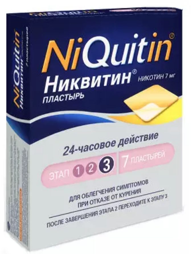 منشیات فعال مادہ - نیکوٹین کے ساتھ ایک پیچ کی شکل میں دستیاب ہے. خوراک 7 ملی گرام، 14 ملی گرام۔ اور 21 ملی گرام۔ ایک دن میں. پیکج میں 7 پیچ ہیں، اسکیم کے مطابق لگائے گئے ہیں۔ یہ جڑی بوٹیوں والی نیکوٹین کسی شخص کو انخلا کی علامات محسوس کیے بغیر سگریٹ نوشی چھوڑنے کی اجازت دیتی ہے: چڑچڑاپن، ضرورت سے زیادہ بھوک۔ 24 گھنٹوں میں 1 بار لگانا ضروری ہے، جسم کے کسی مناسب جگہ پر چپک جائیں، ضرورت کے مطابق خوراک کم کریں۔ علاج کی مدت 8 - 10 ہفتے ہے.