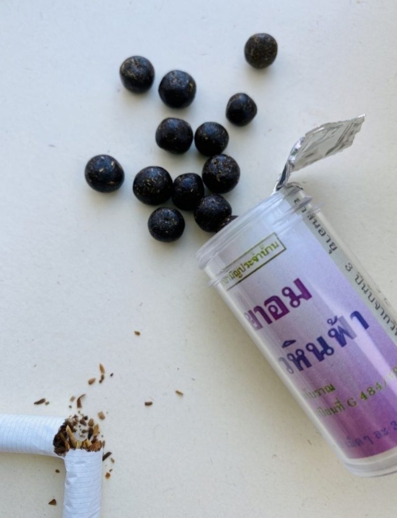 جڑی بوٹیوں کی گیندیں، جن میں شامل ہیں: لیکوریس، لونگ، فیلانتھس، ویرونیا، ہاریتاکی۔ یہ مرکب جسم پر اثر انداز ہوتا ہے، تمباکو سے نفرت کا باعث بنتا ہے، ایک ہی وقت میں نقصان دہ مادہ کو ہٹاتا ہے، پھیپھڑوں کی حالت کو بہتر بناتا ہے. جب آپ سگریٹ نوشی کرنا چاہتے ہیں تو 1 گیند لیں، زیادہ سے زیادہ خوراک 8 پی سیز ہے۔ ایک دن میں. علاج کا دورانیہ 3-4 ہفتے ہے۔