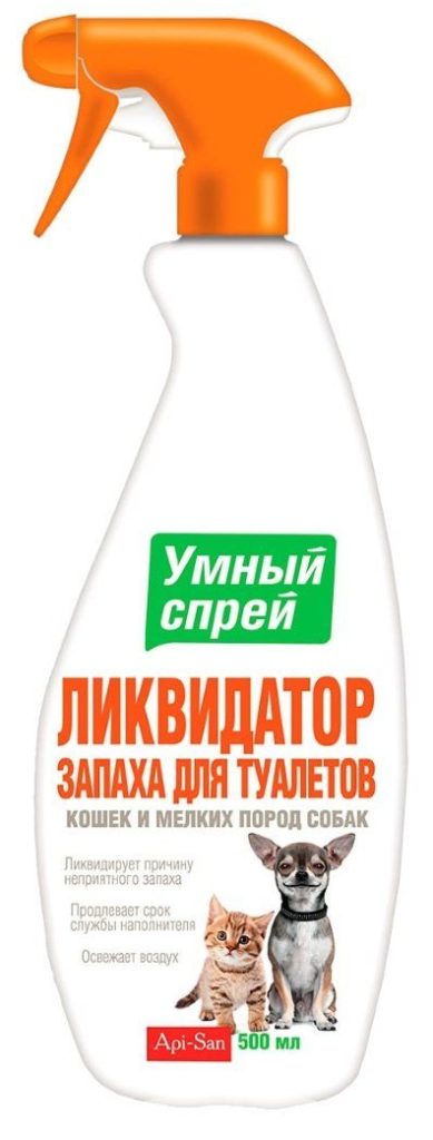 سپرے بلیوں، کتوں اور چوہوں کے بیت الخلا میں آنے والی ناخوشگوار بو سے چھٹکارا پانے میں مدد کرتا ہے۔ جانوروں کے لیے نقصان دہ اجزاء پر مشتمل نہیں ہے: کلورین، فلورین۔ بڑوں اور بچوں کے لیے بھی محفوظ ہے۔ تازہ" ٹرے سے نہ صرف ناخوشگوار بدبو بلکہ تختی اور پیشاب کی پتھری کو بھی ہٹاتا ہے۔