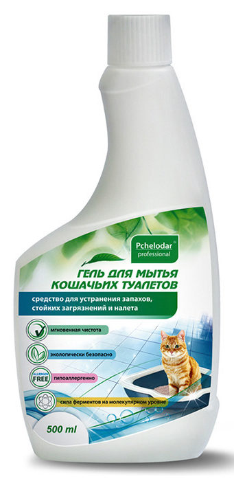 پیشاب کی تختی اور بو سے بلی کی ٹرے سے چھٹکارا حاصل کرنے کے لئے، یہ روسی صنعت کار Pchelodar سے ایک خصوصی جیل کا استعمال کرنے کی سفارش کی جاتی ہے.