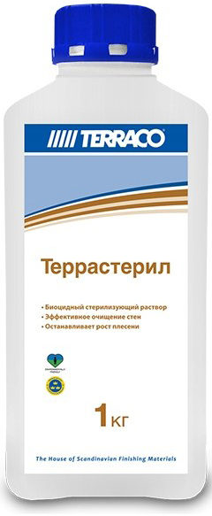 احاطے کے بیرونی اور اندرونی علاج کے لیے انتہائی موثر روسی بائیوکائیڈل ایجنٹ۔ مختلف قسم کے سڑنا، فنگس، کائی، لکین اور طحالب کا کامیابی سے مقابلہ کرتا ہے۔ منشیات کی ساخت میں فعال فنگسائڈز شامل ہیں جو جراثیم کش اثر رکھتے ہیں اور فنگل پلاک کی دوبارہ تشکیل کو روکتے ہیں۔ ایک ہی وقت میں، "Terrasterill" نقصان دہ کیمیائی مرکبات، سالوینٹس پر مشتمل نہیں ہے - یہ ایک ماحولیاتی پانی پر مبنی حل ہے. اس میں اچھی گھسنے کی صلاحیت ہے، اور یہ سطح کو مضبوط اور برابر کرنے کے قابل بھی ہے، جس سے نمی پروف خصوصیات میں اضافہ ہوتا ہے۔جراثیم کش نہ صرف مواد کی ظاہری شکل کو خراب کرتا ہے، بلکہ اس کے رنگ کو بھی ہموار کرتا ہے، اس کے علاوہ، محلول کو کوٹنگ کی طرح سایہ میں رنگا جا سکتا ہے۔ Terrasterill کا ایک اور اہم فائدہ اس کے خشک ہونے کا وقت صرف 18 گھنٹے ہے۔ یہ حل کنکریٹ، پلاسٹر، اینٹوں، معدنیات اور پینٹ شدہ سطحوں کی جراثیم کشی کے لیے لاگو ہوتا ہے۔