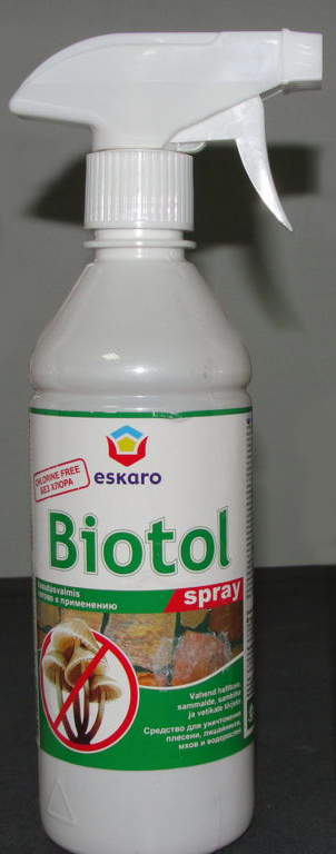 قدرتی پتھر، لکڑی، کنکریٹ اور دیگر عام مواد سے بنی سطحوں کے علاج کے لیے ایک طاقتور روسی اینٹی بیکٹیریل ایجنٹ۔ منشیات میں بھاری دھاتیں، پارا اور کلورین شامل نہیں ہے۔ ہلکی کیمیائی بو ہے۔ "Biotol-spray" ایپلی کیشنز کی ایک وسیع رینج کا مظاہرہ کرتا ہے - تہہ خانوں، عمارتوں کے اگواڑے، اٹکس، چھتوں، بالکونیوں کے علاج کے ساتھ ساتھ تعمیراتی یادگاروں، یادگاری باڑوں، سلیبوں اور بحالی کے کاموں کو جراثیم سے پاک کرنا۔