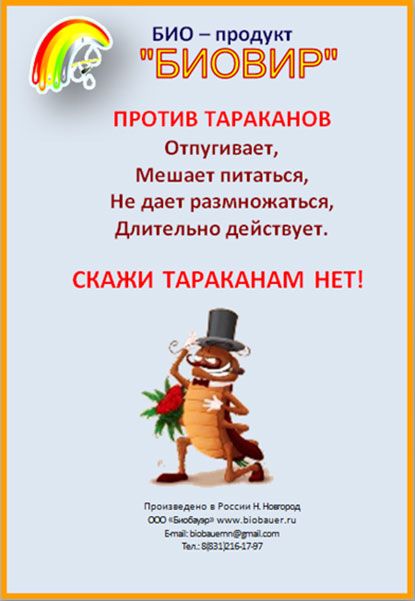 پاؤڈر ماحول دوست جراثیم کش "Biovir" مؤثر طریقے سے کاکروچ کے ساتھ ساتھ ticks کو تباہ کرتا ہے۔تیاری میں موجود فعال مادے کیڑوں کو کھانا کھلانے، ان کی نقل و حرکت اور تولید کو روکتے ہیں۔ کارخانہ دار کے مطابق، مادہ کا حجم (5 گرام) 1-2 ماہ کے لئے کیڑوں سے چھٹکارا حاصل کرنے کے لئے کافی ہے.