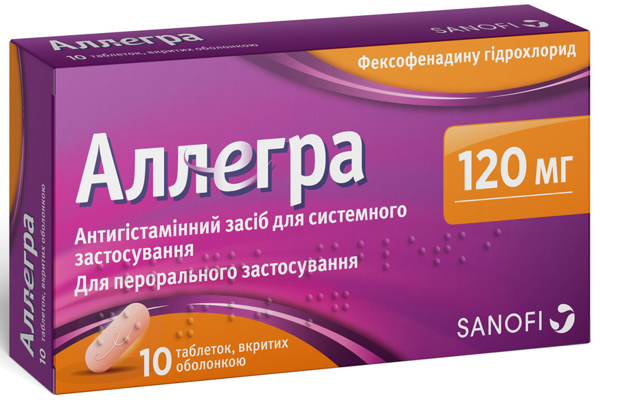 معروف کمپنی Sanofi-Aventis کی فرانسیسی ساختہ دوا۔ الیگرا ایک نئی نسل کی اینٹی ہسٹامائن دوائی ہے جس کے ضمنی اثرات کی مکمل غیر موجودگی پہلے کی دوائیوں اور الفا بلاکرز کے استعمال کے دوران دیکھنے میں آتی ہے۔ ایک گھنٹے کے بعد مثبت اثر نمایاں ہوتا ہے، اور ایک خوراک کے بعد اس کا دورانیہ 24 گھنٹے تک رہتا ہے۔ منشیات لت نہیں ہے اور خوراک میں اضافے کی ضرورت نہیں ہے، اس سے کوئی فرق نہیں پڑتا ہے کہ اس میں کتنا وقت لگتا ہے۔ Allegra مختلف شکلوں کی دائمی خارش، دائمی چھپاکی، الرجک rhinitis کے لئے مقرر کیا جاتا ہے.