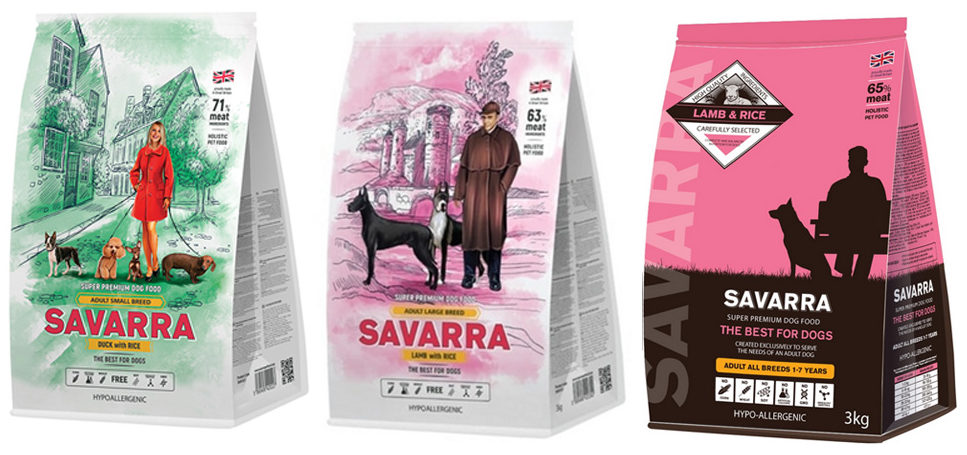اس کھانے کا اصل ملک برطانیہ ہے، یہ سپر پریمیم کلاس میں پہلی جگہوں میں سے ایک ہے۔پروڈکٹ کا بنیادی جزو گوشت، بھیڑ، بطخ یا ترکی ہے، جس میں 63 سے 71 فیصد تک سبزیاں، انڈے، سالمن، قدرتی ذائقے اور مختلف اشیاء شامل ہیں۔ ہڈیوں اور جوڑوں کی تشکیل کے لیے گلوکوزامین، کونڈروٹین، میتھلسلفونیلمتھین جیسے مادے شامل کیے جاتے ہیں۔ Savarra میں سستے اناج شامل نہیں ہیں، لیکن بھورے اور سفید چاول کے ساتھ ساتھ جو بھی ہیں، جن کا فیصد کافی زیادہ ہے۔ کارخانہ دار بڑے اور چھوٹے سائز کے بالغ جانوروں کے لیے کئی قسم کی مصنوعات تیار کرتا ہے، بڑے کتے کے لیے، ساتھ ہی ساتھ چھوٹی نسلوں کے کتے کے لیے ایک ہائپوالرجینک مصنوعات۔
