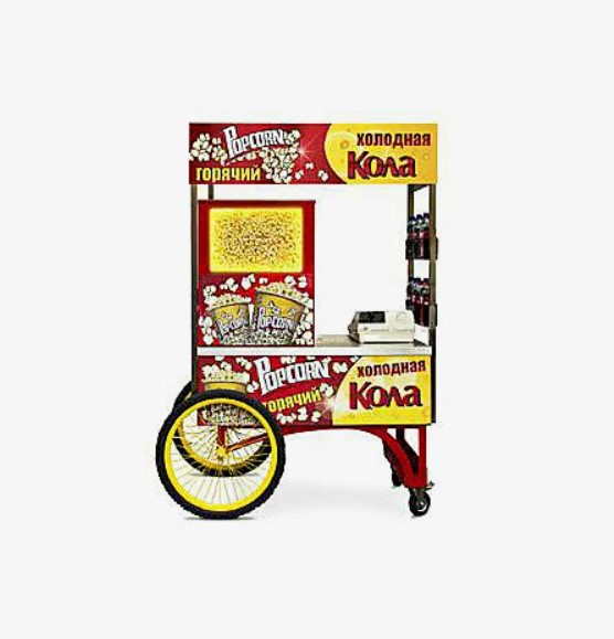 موبائل ٹرالی ایلومینیم سے بنی ہے، ٹرالی پاپ کارن میکر سے لیس ہے۔ ٹرالی میں اسٹاپ کے طور پر دو پہیے اور دو ٹانگیں ہیں۔ جسم روشن سرخ رنگ میں بنایا گیا ہے، پہیوں کو گلابی سپوکس کی شکل میں تیز کیا جاتا ہے. سامان کچے اناج کو جمع کرنے کے لیے ایک ٹرے اور ایک ہینڈل سے لیس ہے، اور ایک ذخیرہ کرنے کا گہا بھی ہے۔ یونٹ کے مجموعی طول و عرض - 1500 × 920 × 1565 ملی میٹر اور وزن - اپریٹس کے ساتھ 30 کلوگرام۔ کٹ کی قیمت 35723 روبل ہے۔