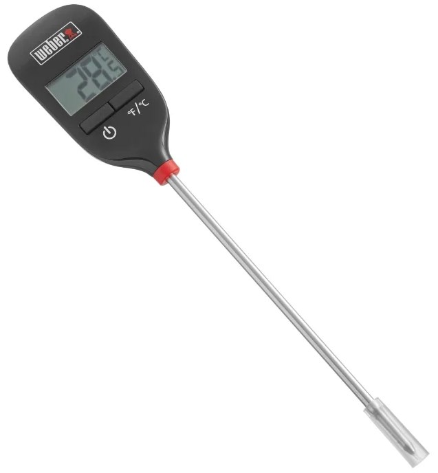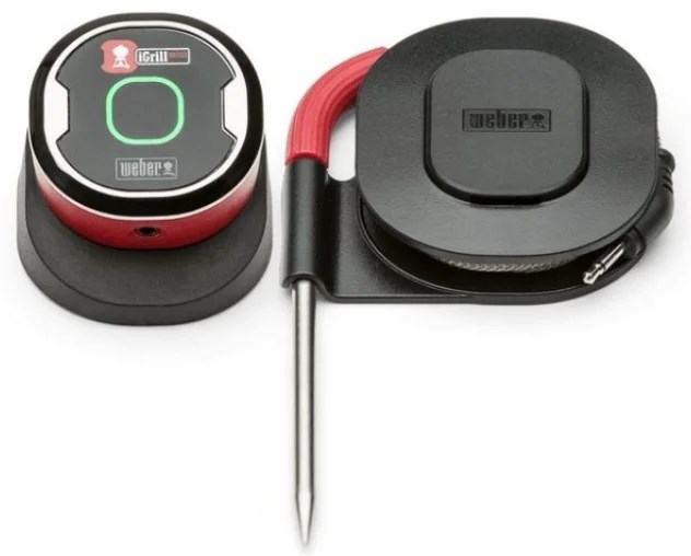 مقناطیسی بیک پینل اور بلوٹوتھ کنٹرول کے ساتھ کومپیکٹ اور جدید ماڈل۔ پہلی نظر میں، ڈیزائن واقف ہے: ایک تحقیقات، ایک گرمی مزاحم کیبل اور مرکزی یونٹ، لیکن اگر آپ قریب سے دیکھیں تو، یونٹ ایک کنڈلی کی شکل میں بنایا گیا ہے جس پر کیبل کو سٹوریج کے دوران کریز سے بچنے کے لئے زخم کیا جاتا ہے. تھرمامیٹر کیبل کی لمبائی: 1.2 میٹر۔ ٹول کی مرکزی اکائی میں صرف ایک بٹن ہوتا ہے - اسے آن اور آف کرنے کے لیے۔ ڈیوائس کا مزید کنٹرول اسمارٹ فون کے ذریعے ایک خصوصی ویبر آئی گرل پروگرام کے ذریعے کیا جاتا ہے، جسے ایپل اسٹور اور گوگل پلے سے ڈاؤن لوڈ کیا جاسکتا ہے۔ پروگرام کے شروع ہوتے ہی یہ 50 میٹر کے دائرے میں دستیاب آلات کی تلاش شروع کر دے گا۔ اگلا مرحلہ مطابقت پذیری ہے۔ پہلے سے نصب پروگراموں کا بعد میں انتخاب اسمارٹ فون پر کیا جاتا ہے۔ یہ دلچسپ ہے کہ گوشت کی قسم اور بھوننے کی ڈگری کے علاوہ، آپ ایک کٹ (لوت کا حصہ) کا انتخاب کرسکتے ہیں جسے آپ پکانا چاہتے ہیں۔ کھانا پکانے کی پیش رفت اسمارٹ فون اسکرین پر پائی چارٹ یا گراف کی شکل میں ظاہر ہوتی ہے۔ اسمارٹ فون ڈش کی تیاری کا اشارہ کرتا ہے۔ درجہ حرارت کی جانچ کی درجہ حرارت کی حد -5 سے +380 ° C تک ہے۔1 CR2032 بیٹری سے تقویت یافتہ۔
