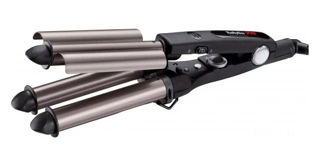 اس طرح کے چمٹے کی مدد سے، آپ لہراتی اسٹائل کے ساتھ ساتھ نالیدار کرل بھی بنا سکتے ہیں۔ کام کرنے والے عناصر میں تین بیرل کی شکل اور ٹائٹینیم ٹورملین کوٹنگ ہوتی ہے۔ ہر کام کرنے والے عنصر کا قطر 19 ملی میٹر ہے۔ آپریٹنگ کے پانچ طریقے ہیں، جہاں آپ 140 سے 210 ڈگری تک درجہ حرارت کا انتخاب کر سکتے ہیں۔ یہ قابل غور ہے کہ آپریشن کے دوران، آلہ آئنوں کو پیدا کرے گا جو curls پر فائدہ مند اثر پڑے گا. ان کی مدد سے، بالوں کا ہائیڈرو بیلنس برقرار رہے گا، وہ چمک اور ریشم حاصل کریں گے، اور بجلی نہیں بنیں گے.
