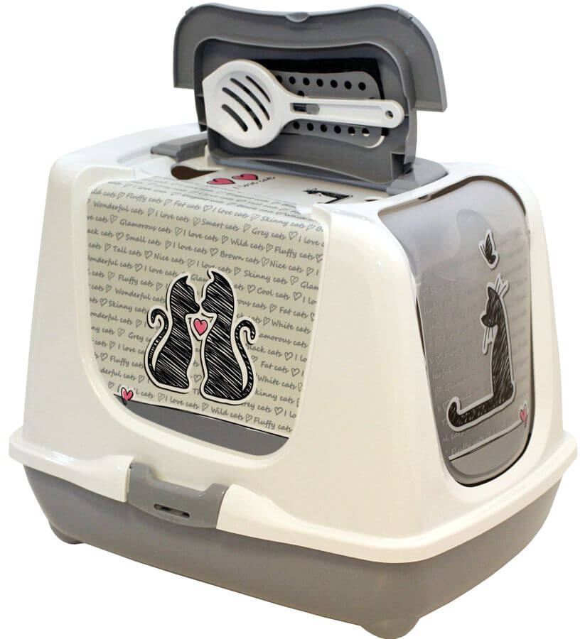 اس طرح کے نمونے گھر کی ایک مخصوص تصویر کی نمائندگی کرتے ہیں، اور ماہرین کے مطابق، جانور کھلی قسم کی ٹرے کے مقابلے میں ان میں زیادہ آرام دہ محسوس کرتے ہیں۔ ایسی پرجاتیوں میں، مواد کو تبدیل کرنے کے لیے اوپر کا احاطہ ہٹانا عام ہے۔