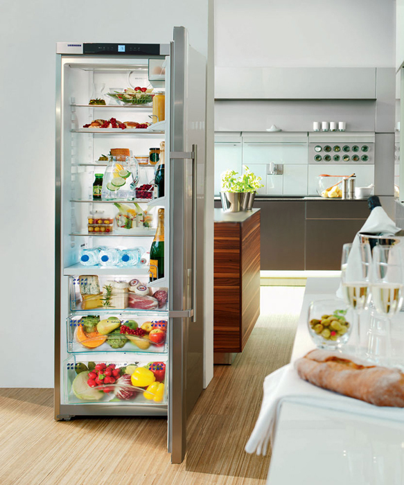 Liebherr ریفریجریٹر 65 سینٹی میٹر چوڑا، 72 سینٹی میٹر گہرا اور 160 سینٹی میٹر اونچا ہے۔تین ایڈجسٹ شیشے کی شیلف کے ساتھ ساتھ ایک فریشر دراز اور ایک سے زیادہ ڈور کمپارٹمنٹس ہیں، جبکہ فریزر، جو یونٹ کے نیچے واقع ہے، ایک ہٹنے والا تار شیلف رکھتا ہے۔ صارف ریفریجریٹر اور فریزر سسٹم کے لیے الگ الگ الیکٹرانکس کے ساتھ آلات کو کنٹرول کر سکتا ہے اور ساتھ ہی کابینہ کو روشن کرنے کے لیے ایل ای ڈی لائٹس کی شدت کو ایڈجسٹ کر سکتا ہے۔ آخر میں، ریفریجریٹر کے الٹ جانے والے دروازے کے قلابے اسے بائیں یا دائیں طرف کھولنے کی اجازت دیتے ہیں، جس سے انفرادی جگہوں کے مطابق جگہ کا انتخاب ممکن ہو جاتا ہے۔
