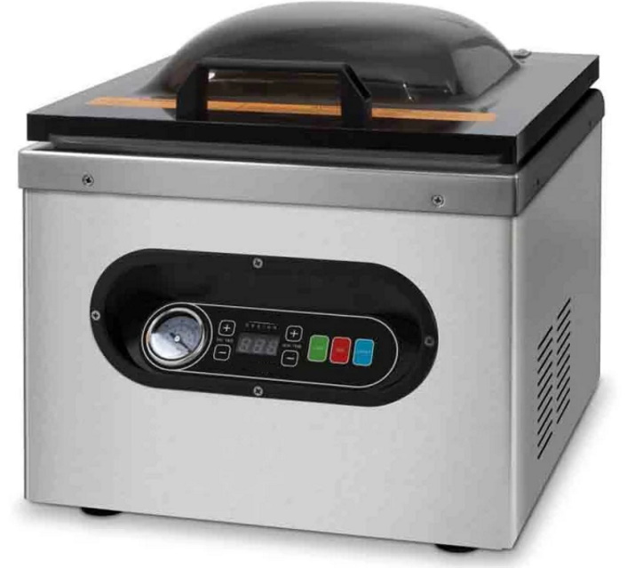 دیرپا تازگی کے ساتھ توسیع شدہ شیلف لائف کے لیے طاقتور گہری ویکیوم اور فوڈ پیکیجنگ مشین۔ ویکیوم بنانے کے لیے، استعمال کیے گئے خصوصی بیگ یا کنٹینرز کے لحاظ سے مناسب موڈ کا انتخاب کرنا کافی ہے۔ ایک بدیہی ایل ای ڈی کنٹرول پینل کے استعمال سے ورک فلو کو بہت آسان بنایا گیا ہے۔ شیف ٹچ سسٹم کے ساتھ مطابقت آپ کو اسٹیمر اور بلاسٹ فریزر کے ساتھ مل کر سوس ویڈیو ڈشز بنانے کی اجازت دیتی ہے۔