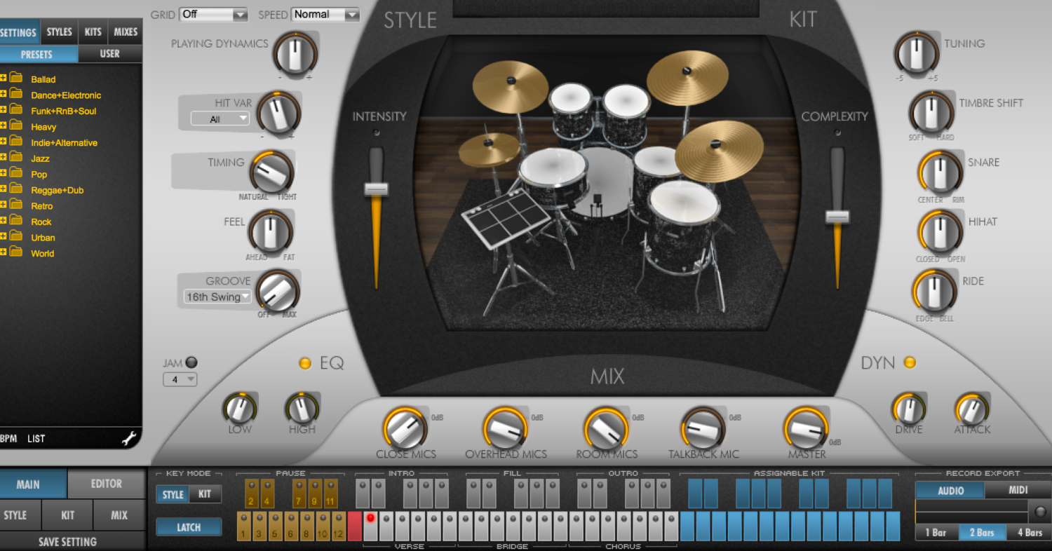 پاپ میوزک سے لے کر راک اور میٹل تک مختلف انواع میں ریڈی میڈ کمپوزیشن ترتیب دینے کا ایک اچھا حل۔ صوتی ڈرم کٹ کی آوازوں کو درست طریقے سے دوبارہ پیش کرتا ہے۔ اس کا فائدہ یہ ہے کہ آوازیں پہلے سے ہی برابری پر پروسس کی جاتی ہیں، اس لیے وہ تیار شدہ کمپوزیشن میں آسانی سے فٹ ہوجاتی ہیں اور جب آپ خود لکھتے ہیں تو ایک دوسرے کے ساتھ اچھی طرح گھل مل جاتے ہیں (کچھ پلگ ان کے برعکس جو ایک ہی ڈھول کی اچھی سولو آواز دیتے ہیں، جو فٹ نہیں ہوتے۔ کسی بھی مرکب میں)۔