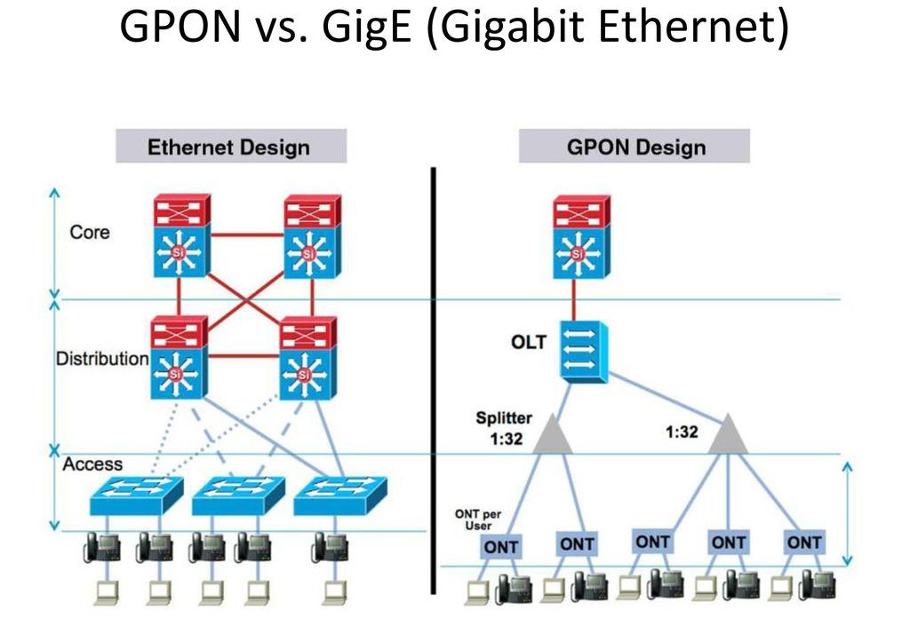 ایتھرنیٹ کے فوائد اور نقصانات تقریباً GPON جیسے ہی ہیں۔ جب تک کہ مؤخر الذکر اب بھی منتقل شدہ سگنل کے معیار اور استحکام کے لحاظ سے جیت نہیں جاتا ہے۔