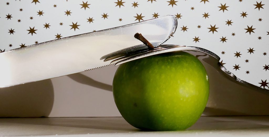 ایسی صورتوں میں جہاں آپ کو ایک سیب کو بڑے ٹکڑوں میں کاٹنا ہو، آپ سرپل کٹ چاقو کے کام کو خارج کر سکتے ہیں اور چھیلنے کے لیے آلہ کا انتخاب کرنا چھوڑ سکتے ہیں۔