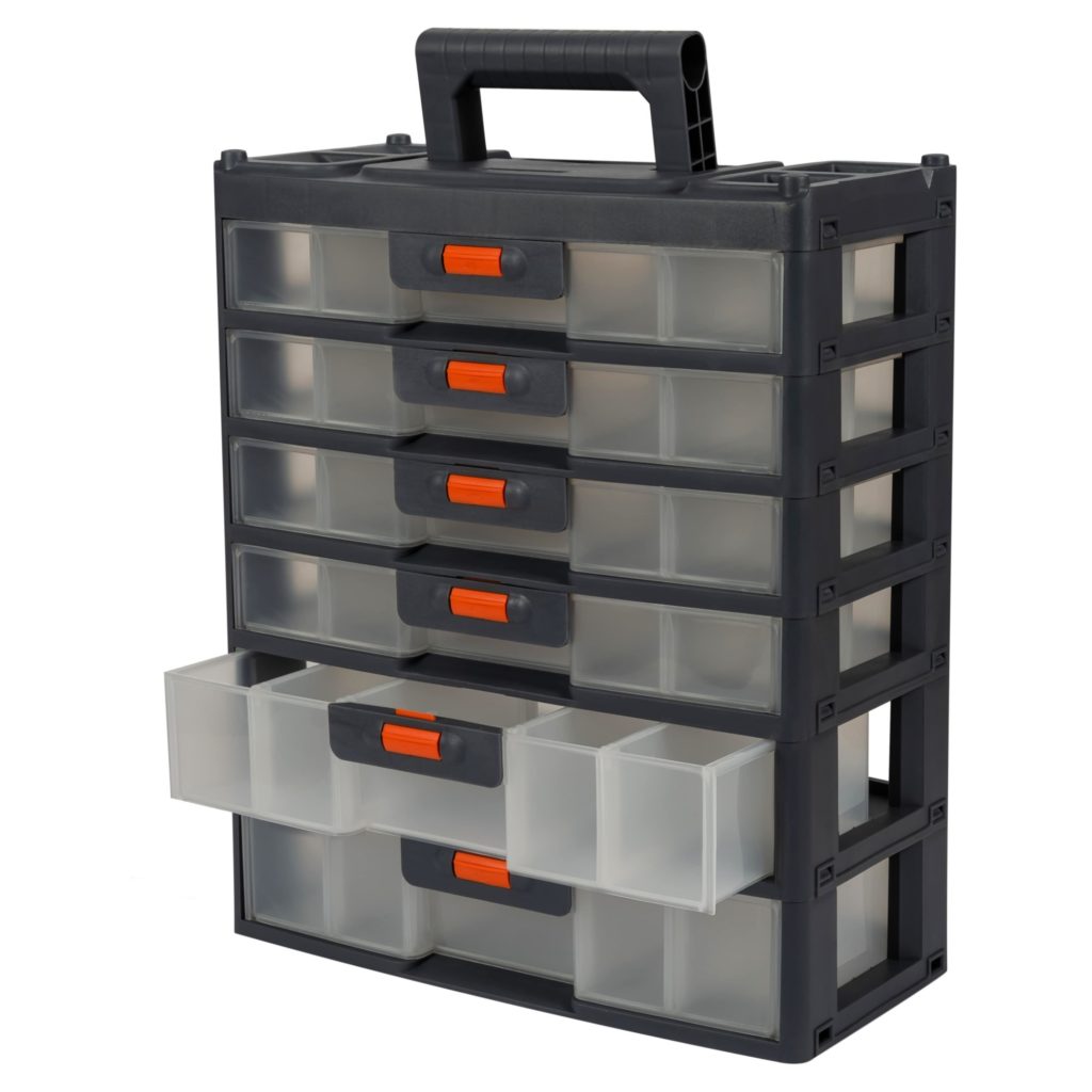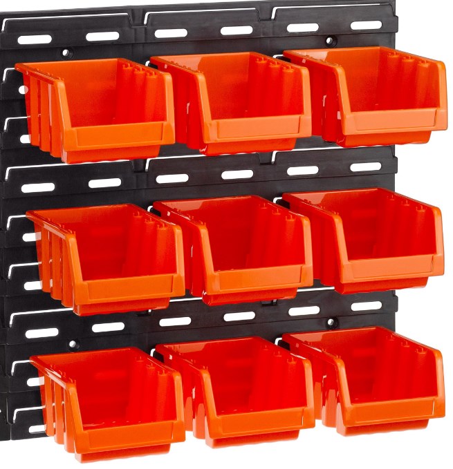 چھوٹے حصوں، لوازمات، فاسٹنرز وغیرہ کو ذخیرہ کرنے کے لیے عمودی آرگنائزر۔ یہ 52x32x132 ملی میٹر کی پیمائش کرنے والے 30 خلیوں کا ذخیرہ کرنے کا نظام ہے۔ سیلز شفاف پلاسٹک سے بنے ہیں جس کی وجہ سے مطلوبہ حصہ تلاش کرنا آسان ہو جاتا ہے۔ ہر حصے کو ایک پارٹیشن کے ذریعے 3 حصوں میں تقسیم کیا جا سکتا ہے، جو آپ کو 90 کمپارٹمنٹس بنانے کی اجازت دیتا ہے۔