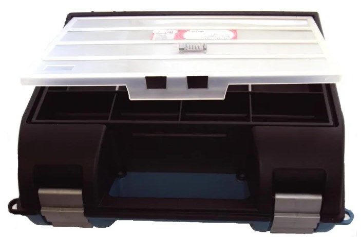 باکس کی سوچ سمجھ کر اور احتیاط سے منصوبہ بندی کی گئی اندرونی ساخت اسے نہ صرف وسیع و عریض بناتی ہے بلکہ مختلف سائز کے کام کے لوازمات کی ایک بڑی تعداد کو ذخیرہ کرنے کے لیے کافی آسان بناتی ہے۔ مین کمپارٹمنٹ بڑے سائز کے ٹولز کے لیے ڈیزائن کیا گیا ہے؛ چھوٹے آلات اور کام کے لوازمات کو ہٹنے والی ٹرے میں رکھا جا سکتا ہے۔ چھوٹی چیزوں (لوازمات، بندھن وغیرہ) کے لیے ڈھکن پر 3 اور سامنے کی طرف 2 منتظم ہیں۔ ہینڈل ڑککن میں recessed ہے. تالے پلاسٹک سے بنے ہیں۔ تالہ لٹکانا ممکن ہے۔