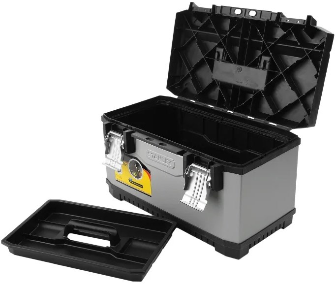 مضبوط پلاسٹک سے بنائے گئے وسیع باکس کا مقصد مختلف قسم کے سامان کو ذخیرہ کرنے اور نقل و حمل کے لیے بنایا گیا ہے۔ ڑککن میں V کے سائز کے وقفے کی وجہ سے، جس میں آرا کرنے والے حصے اچھی طرح سے فٹ ہوتے ہیں، یہ لکڑی اور پائپ کے ساتھ کام کرنے پر زیادہ توجہ مرکوز کرتا ہے۔ لیکن یہ ماسٹرز اور دیگر شعبوں کے لیے بہترین ہے۔ بڑے ٹولز کے لیے ڈیزائن کیے گئے مین کمپارٹمنٹ کے علاوہ، کثرت سے استعمال ہونے والے سامان کو ذخیرہ کرنے کے لیے ایک ہٹنے والی ٹرے بھی ہے۔ ڑککن اینٹی سلپ نوچز سے لیس ہے، جو ضرورت پڑنے پر، پھسلنے کے خوف کے بغیر باکس پر کھڑے ہونے کی اجازت دیتا ہے۔ آسان ہینڈل کو ڑککن میں دوبارہ لگایا جاتا ہے، جو نقل و حمل کے دوران کنٹینر کے طول و عرض کو کم کرتا ہے۔دھاتی کلپس ایک محفوظ بندش فراہم کرتے ہیں۔ تالے کے لیے خاص سوراخ ہیں۔