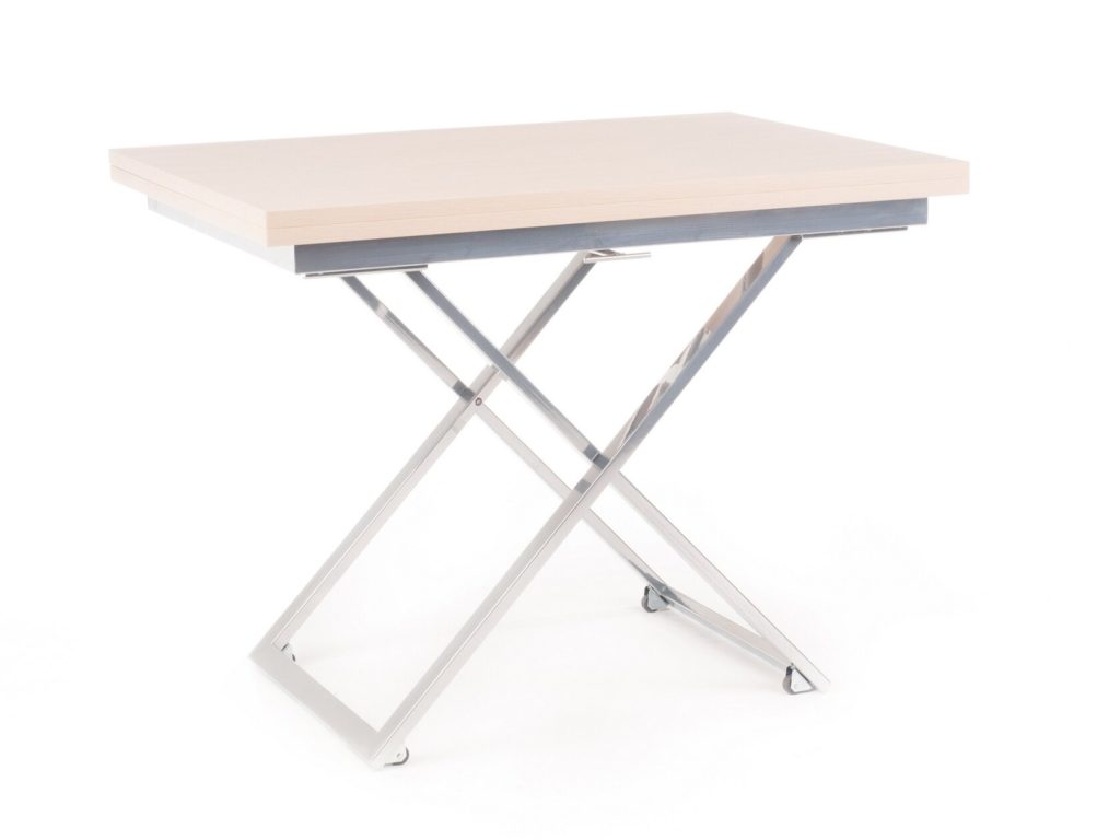 جب تہہ کیا جاتا ہے، تو چپ بورڈ سے بنا wenge-tsavo رنگین ماڈل 80 x 80 سینٹی میٹر کی پیمائش والی پلنگ کی میز کی طرح لگتا ہے، اور جب کھولا جاتا ہے تو یہ 120 سینٹی میٹر لمبی ایک مکمل میز میں بدل جاتا ہے۔ 56 سے 75 سینٹی میٹر تک اونچائی کی ایڈجسٹمنٹ فراہم کی گئی ہے۔ چپ بورڈ وزن - 36 کلو.