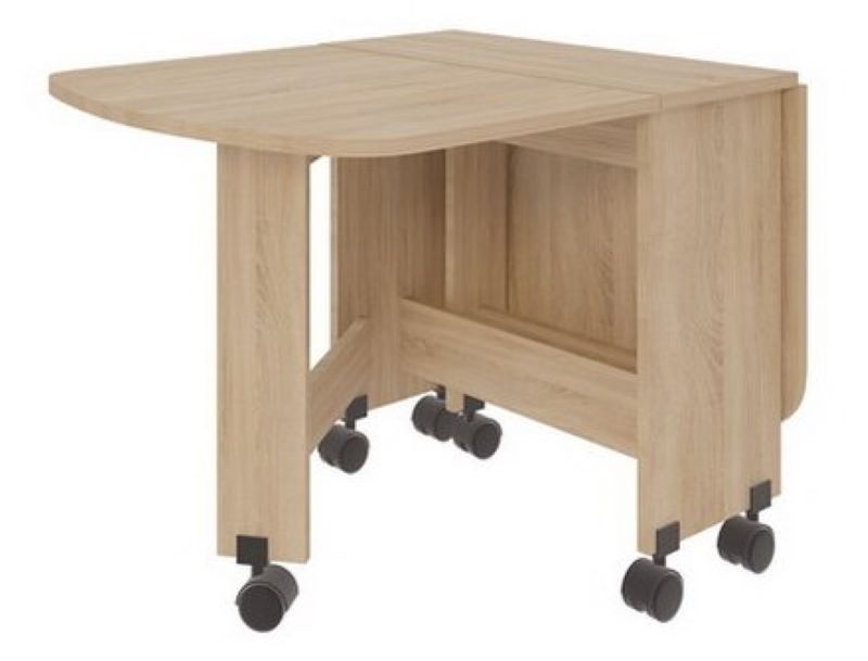 فولڈ ہونے پر، یہ میز 28 سینٹی میٹر جگہ لے گی، اور کھلی ہوئی - 119 سینٹی میٹر، اور آرام سے ایک بڑی کمپنی کو ایڈجسٹ کرے گی۔ اونچائی - 55.1 سینٹی میٹر۔ چپ بورڈ سے بنا۔ تین ورژن میں دستیاب ہے: ملکی اوک، سونوما اوک، وینج۔