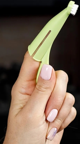 انگلی کی نوک کی شکل میں بنائی گئی یہ پروڈکٹ عمل کے دوران پھسلے بغیر پالتو جانور کے مالک کی انگلی پر مضبوطی سے بیٹھتی ہے۔ یہ شکل تمام دانتوں تک آسان رسائی کی اجازت دیتی ہے۔ماڈل کے طول و عرض: 5.5x1.7 سینٹی میٹر۔ انگلی کی نوک نرم ربڑ سے بنی ہے، جو زبانی گہا کی نرم اور نرم صفائی کو یقینی بناتی ہے۔ کتوں اور بلیوں کے لیے یکساں طور پر موزوں ہے۔ ماڈل کا رنگ شفاف ہے۔ اوسط قیمت ہے - 140 روبل.