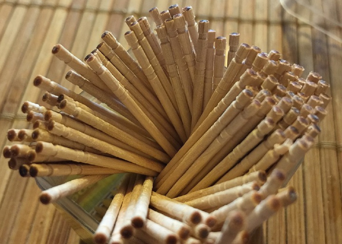 تصویر - میز پر شیشے کے پیالے میں بانس کے ٹوتھ پک
