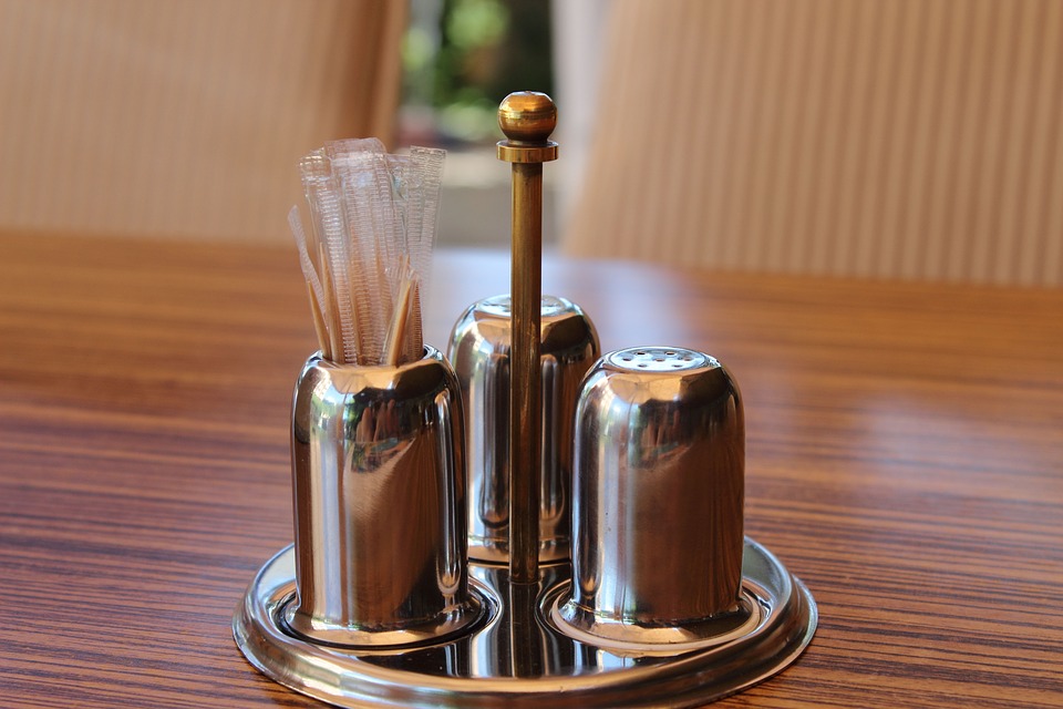 تصویر - عوامی مقامات میں سے کسی ایک میز پر انفرادی طور پر لپیٹے ٹوتھ پک