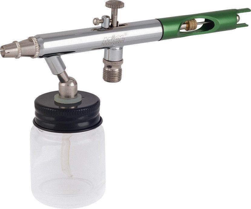 نیومیٹک طریقہ کی وجہ سے، ایئر برش میں ایک بڑا دباؤ پیدا ہوتا ہے، جو ایک تنگ ٹیوب کے ذریعے مائع کی ایک چھوٹی سی جیٹ کو نچوڑتا ہے۔ ٹیوب کے بیرونی حصے کے آخر میں، ماحول کے دباؤ اور آلے کے اندر ایک بڑا اختلاف ہے، جس سے ایک چھوٹا خلا پیدا ہوتا ہے۔