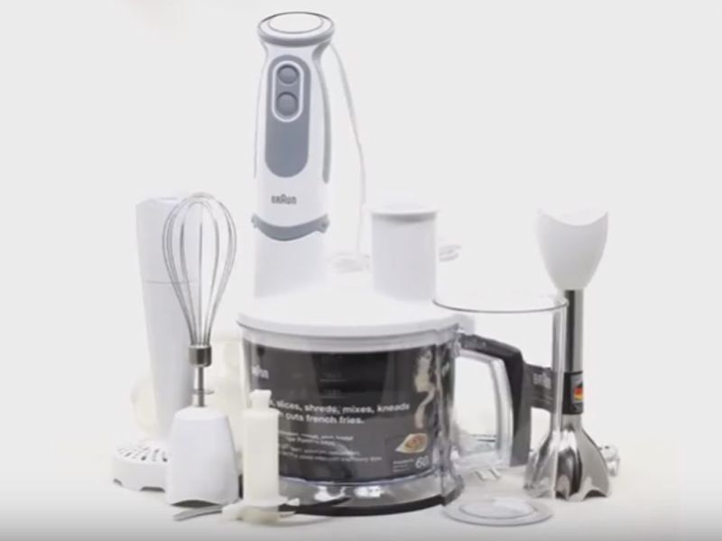 Braun MQ 5077 Buffet + blender ماڈل رومانیہ میں بنایا گیا ہے اور اسے اس برانڈ کے بہترین میں سے ایک سمجھا جاتا ہے۔ اوسط قیمت 7469 روبل ہے.