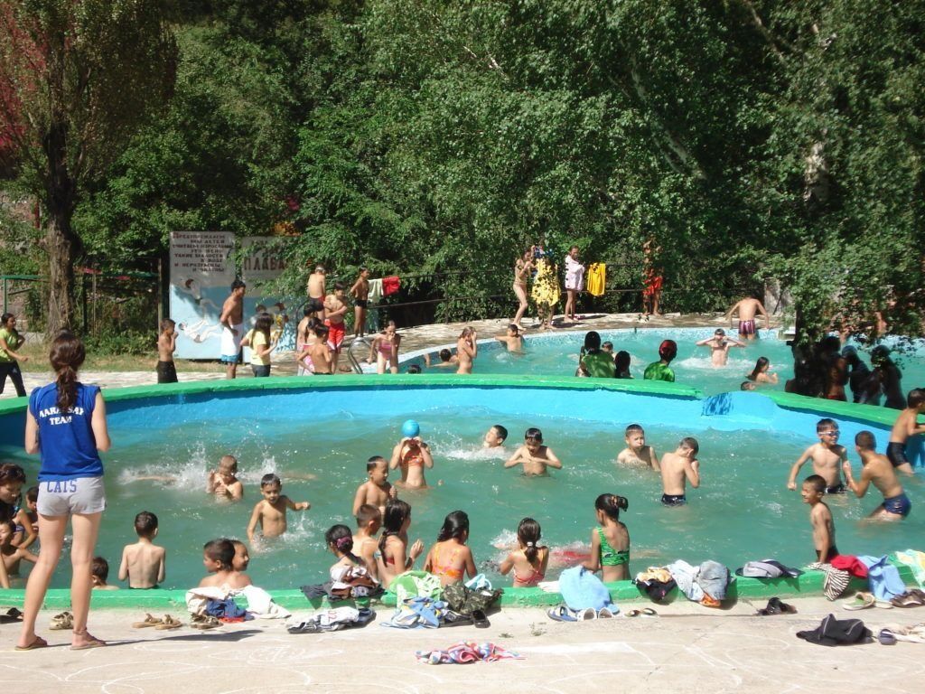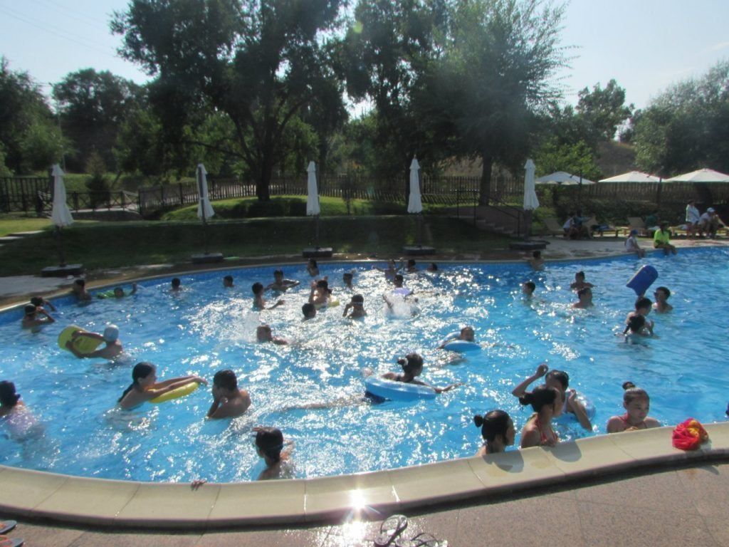 کیمپ کی سرزمین پر ایک ایکوا سینٹر واقع ہے، سینئر معلم، ٹیم لیڈرز کے ساتھ ساتھ ایک طبی کارکن، ایک تیراکی کا انسٹرکٹر اور ایک لائف گارڈ بچوں کے نہانے کو دیکھ رہے ہیں۔
