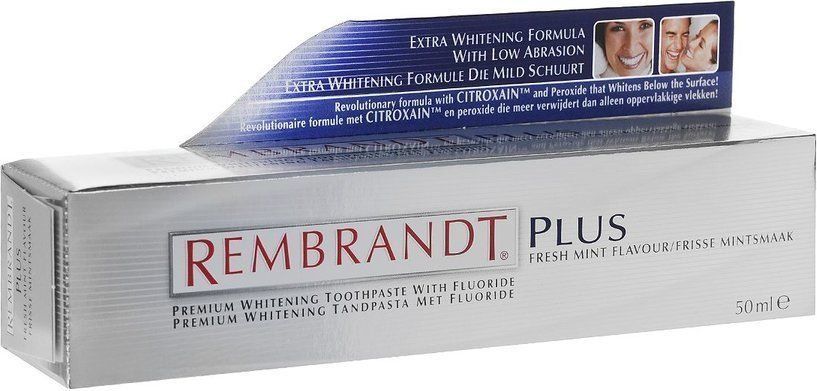 اور ہماری درجہ بندی میں پہلا مقام سفید کرنے والی دوائی REMBRANDT Plus کے قبضے میں ہے۔