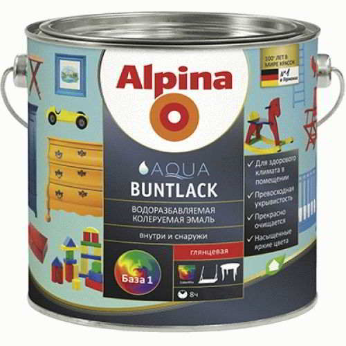 Alpina Aqua Buntlack ایک ایکریلک پر مبنی پینٹ ہے جو ایک خوبصورت چمک پیدا کرتا ہے۔ 0.7 لیٹر اور 2.5 لیٹر کین میں دستیاب ہے۔