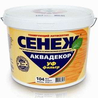 SENEZH AQUADECOR ایک جراثیم کش ہے جس کا بنیادی کام لکڑی کی سطح کی حفاظت کرنا ہے۔ رنگوں کا کافی بڑا پیلیٹ ہے۔