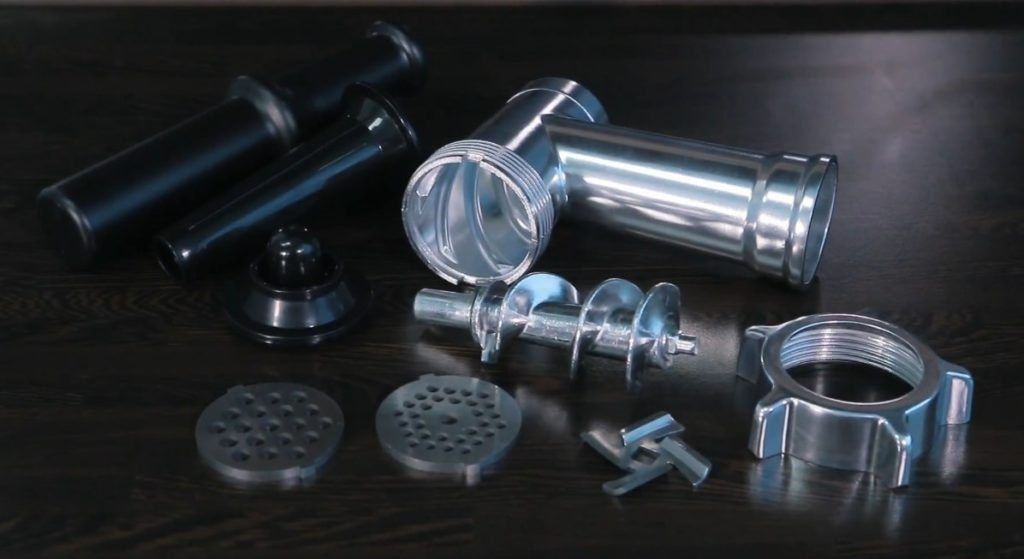 ڈیوائس کی پیداواری صلاحیت 800 واٹ کی طاقت پر 3 کلوگرام فی منٹ ہے۔ مسلسل آپریشن کا وقت صرف 3 منٹ ہے۔ سوراخ کے قطر کے ساتھ 3 گرلز پر مشتمل ہے: 3 ملی میٹر، 5 ملی میٹر اور 7 ملی میٹر۔ مزید برآں، ایک برگر پریس نوزل ہے، جو آپ کو کٹے ہوئے گوشت سے مطلوبہ موٹائی کے کٹلٹس کو تیزی سے بنانے کی اجازت دیتا ہے۔