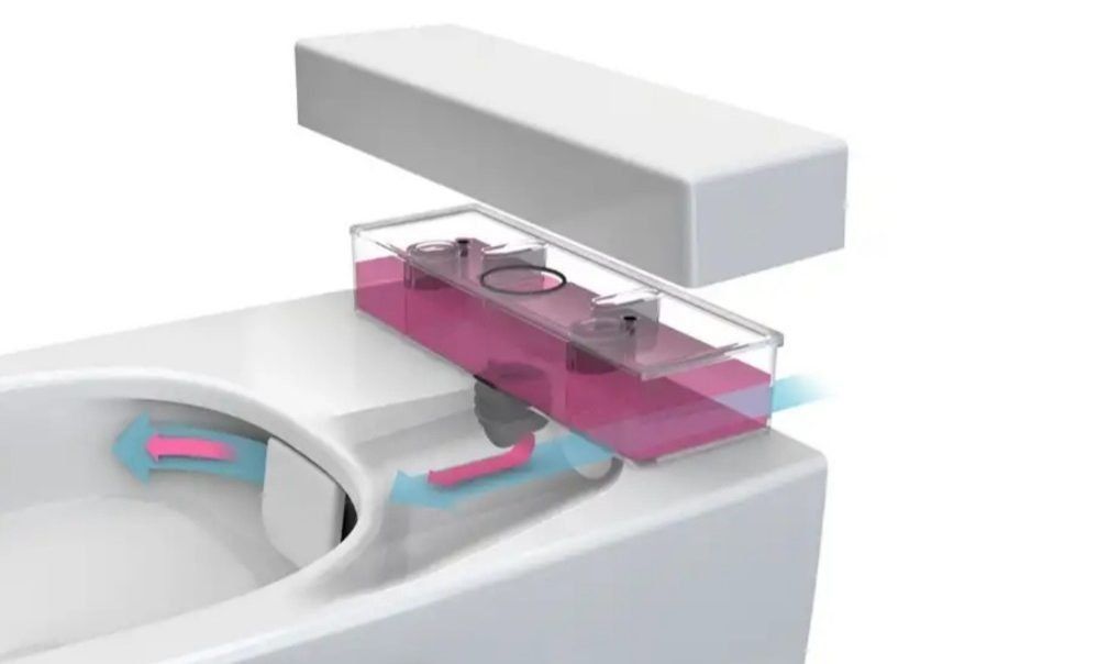- بیت الخلا کا پیالہ پانی کی فراہمی کو چھپاتا ہے، اس لیے یہ ننگی آنکھ سے پوشیدہ ہو جاتا ہے، بیت الخلا کو کثیر سطحی پانی کی فراہمی سے اچھی طرح صاف کیا جاتا ہے، جس میں صاف بہاؤ کا راستہ ہوتا ہے۔ عام حفظان صحت کی مصنوعات کے ساتھ آسان دیکھ بھال میں جرثوموں کے خلاف تحفظ؛