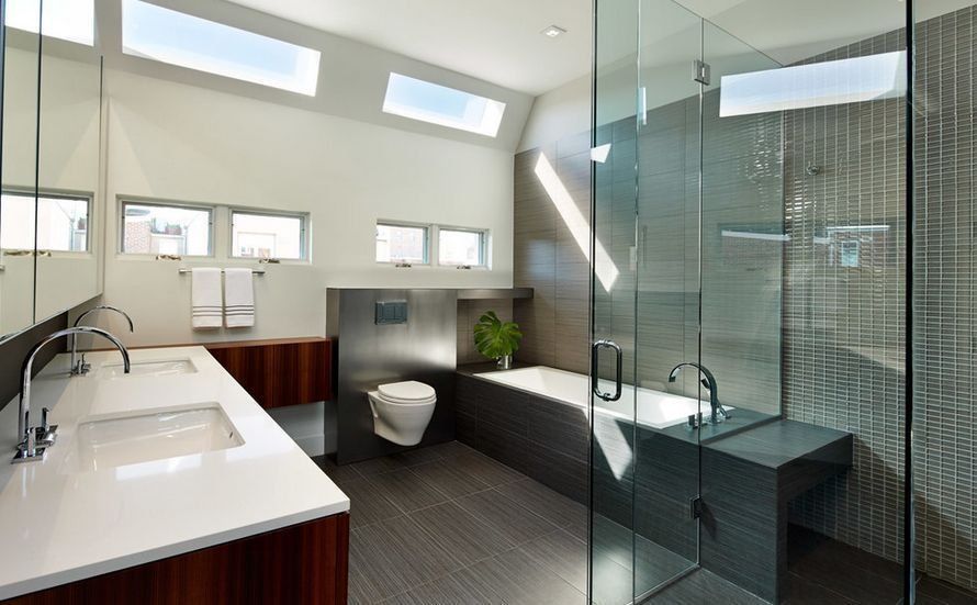 اس حقیقت کے علاوہ کہ دیوار میں ڈالا گیا فریم ٹوائلٹ ٹانگ کا کردار ادا کرتا ہے، ڈرین ٹینک بھی دیوار میں چھپا ہوا ہے، دبانے کے لیے صرف دو بٹن ہیں، پانی کی فراہمی کی شدت میں مختلف، اور ایک پینل جس پر بٹن سطح پر واقع ہیں. اس طرح، تمام پلمبنگ بھی دھاتی فریم کے پیچھے چھپی ہوئی ہے. بلاشبہ، پائپ کہیں غائب نہیں ہوتے ہیں اور باتھ روم میں اپنی جگہ لے لیتے ہیں، لیکن ظاہری طور پر یہ سب کچھ زیادہ صاف نظر آتا ہے اور ایسا لگتا ہے کہ آپ جگہ جیت سکتے ہیں۔