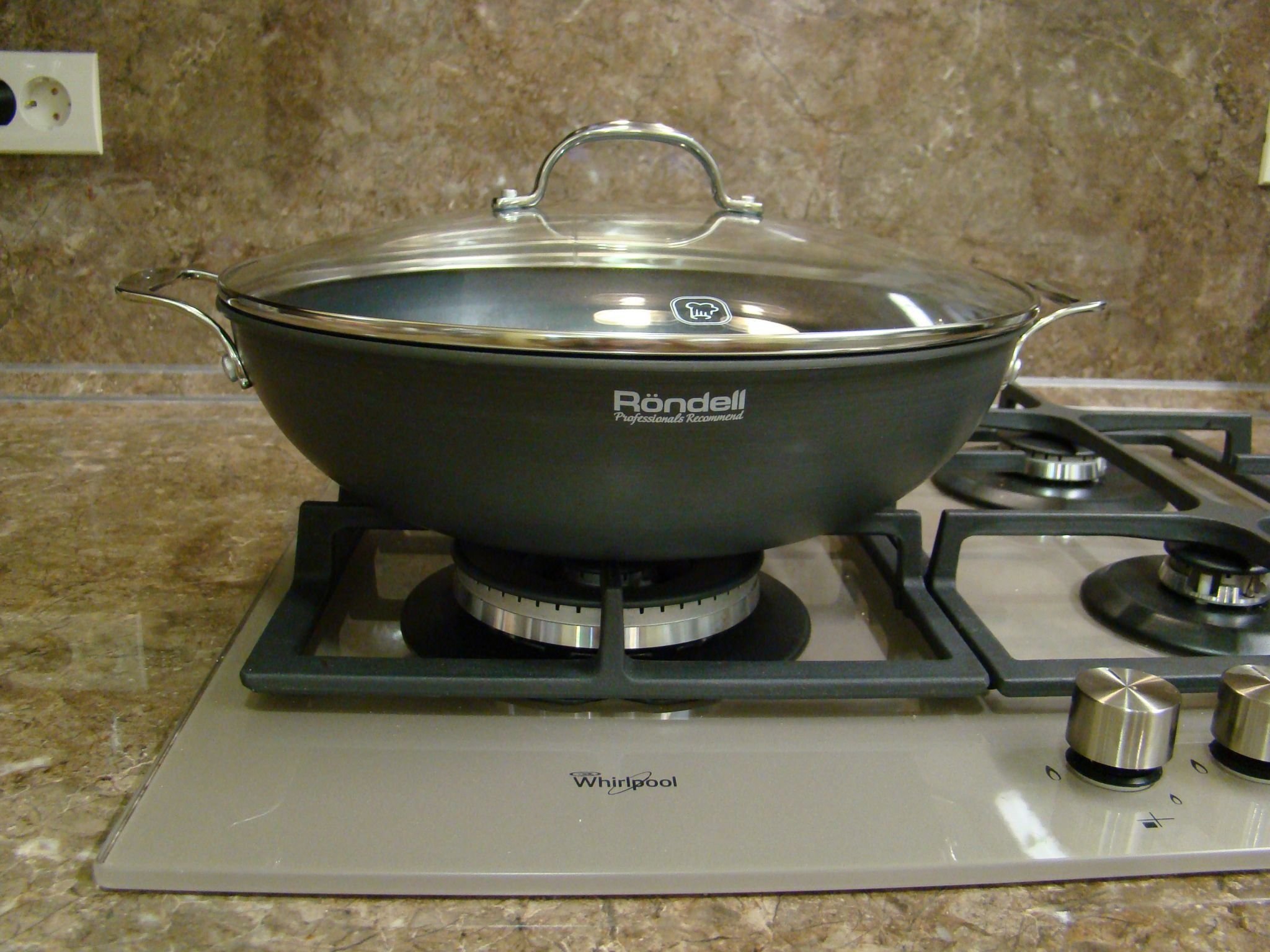 ڈیزائن کسی کو بھی متاثر کرے گا۔ wok خود سنگ مرمر کے ذرات کے ساتھ ایلومینیم سے بنا ہے، جو اسے خروںچ اور ٹکرانے سے خوفزدہ نہیں ہونے دیتا ہے۔ اور کٹ کے ساتھ جو ڈھکن آتا ہے وہ سٹینلیس سٹیل سے بنا ہوتا ہے (چمکنے کے لیے پالش کرتا ہے) اور اوپر شیشے کی کھڑکی ہوتی ہے (آپ کو کھانا پکانے کے عمل کا مشاہدہ کرنے کی اجازت دیتا ہے)۔