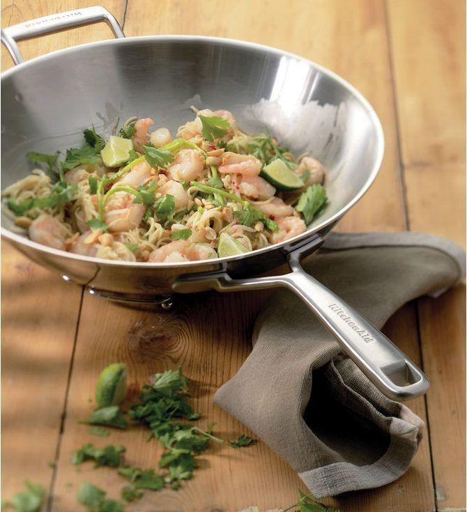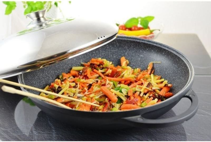 اس پر آپ سٹری فائی اور سادہ سبزیاں، گوشت، مچھلی پکا سکتے ہیں۔ یہ پین بہت جلدی لیکن یکساں طور پر گرم ہوجاتا ہے۔ کوئی نان اسٹک کوٹنگ نہیں ہے، جو آپ کو کسی بھی مواد سے اسپاٹولس کے ساتھ کھانا پکانے کی اجازت دیتی ہے۔