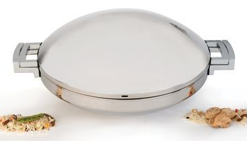 اس کا قطر 36 سینٹی میٹر ہے۔ اسٹیل کا بنا ہوا ہے، جسے ہر طرف چمکانے کے لیے پالش کیا جاتا ہے۔ دیوار کی موٹائی ایک سینٹی میٹر سے کم ہے، جو پین کو تیزی سے گرم ہونے دیتا ہے۔ لیکن پین اور ڈھکن کی بیضوی شکل آپ کو پکی ہوئی ڈش کو زیادہ دیر تک گرم رکھنے کی اجازت دیتی ہے۔