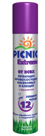 35% کے ارتکاز کے ساتھ فعال مادہ DEET کے ساتھ ایک ایروسول کی شکل میں اخترشک۔ منشیات ایک شخص کو مختلف کیڑوں سے بچاتا ہے، بشمول ticks.یہ لباس اور ننگی جلد دونوں پر لگایا جاتا ہے۔ مادہ کی ساخت میں یوکلپٹس کا تیل شامل ہے، جو جلد کی دیکھ بھال کرتا ہے۔