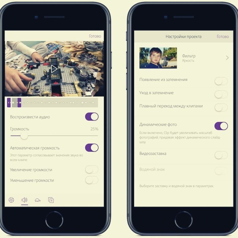 اگر آپ چاہیں تو، آپ آسانی سے اپنی لائبریری سے ایک ساؤنڈ ٹریک منسلک کر سکتے ہیں، سب ٹائٹلز شامل کر سکتے ہیں اور کور میں ترمیم کر سکتے ہیں۔ تیار شدہ ویڈیو کو محفوظ کیا جا سکتا ہے یا جلدی سے Vimeo پر پوسٹ کیا جا سکتا ہے۔ ایپلی کیشن مختلف فلٹرز کو سپورٹ کرتی ہے جو ویڈیو کو فوری طور پر پیاری بنا دیتے ہیں۔