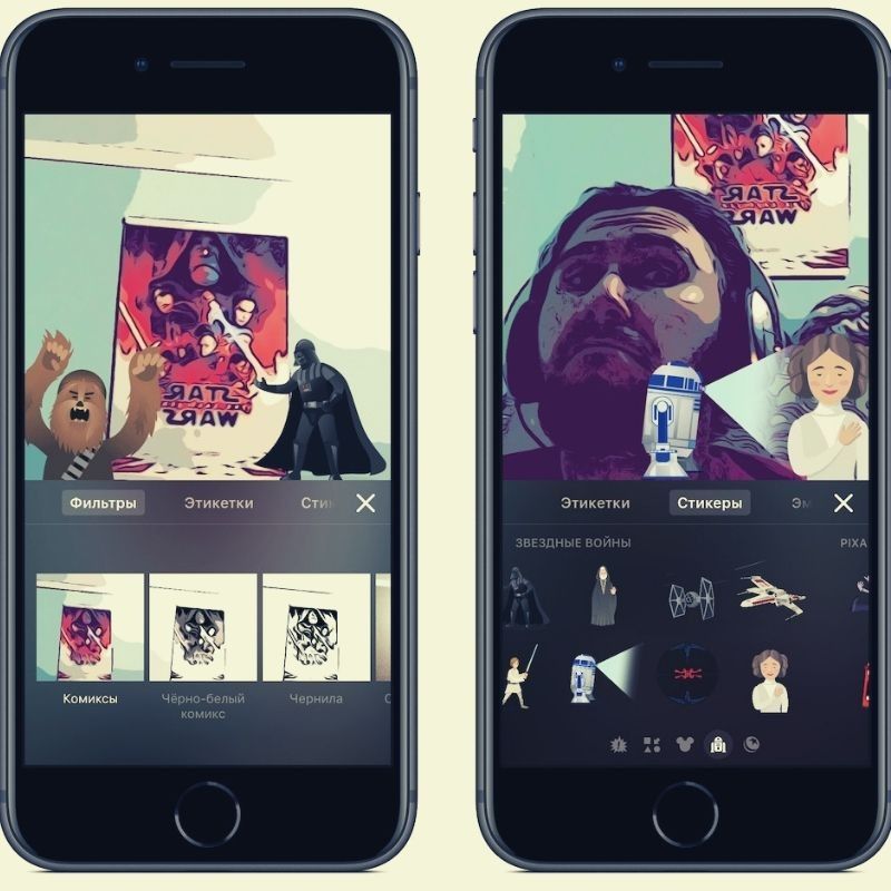 اس ایپلی کیشن کا استعمال کرتے ہوئے، آپ ریکارڈنگ میں مختلف مشہور فلموں کے مختلف بصری خصوصی اثرات شامل کر سکتے ہیں۔ "اسٹار وارز" کے نئے حصے کی ریلیز کے لیے تخلیق کاروں نے اس تصویر پر کام کرنے والے فنکاروں کے اثرات اور ٹیمپلیٹس کے ساتھ ایک سیٹ شامل کیا۔ سافٹ ویئر کو AppStore سے مفت میں ڈاؤن لوڈ کیا جا سکتا ہے، ایفیکٹ کٹس تقریباً 65 روبل کی قیمت پر دستیاب ہیں، جیسا کہ تفصیل میں بتایا گیا ہے۔