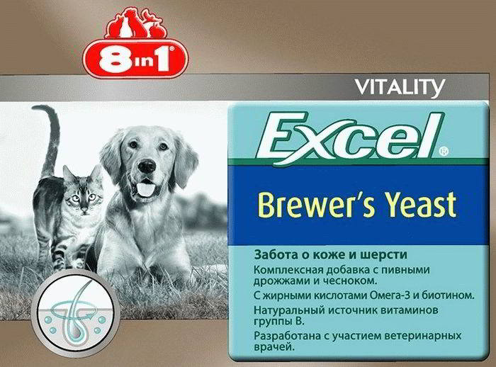 بریور کا خمیر وٹامن بی کا ایک تسلیم شدہ ذریعہ ہے، جس کا جسم پر اچھا اثر پڑتا ہے، اس میں لینولک ایسڈ، امینو ایسڈ، زنک، آئرن، کاپر، کوبالٹ بھی ہوتا ہے۔ یہ کمپلیکس قوت مدافعت کو بہتر بناتا ہے، جلد کی حالت کو بہتر بناتا ہے، بالوں کی تیزی سے نشوونما کو فروغ دیتا ہے، اور کتوں میں جگر کی بیماریوں کے لیے ایک حفاظتی اقدام ہے۔
