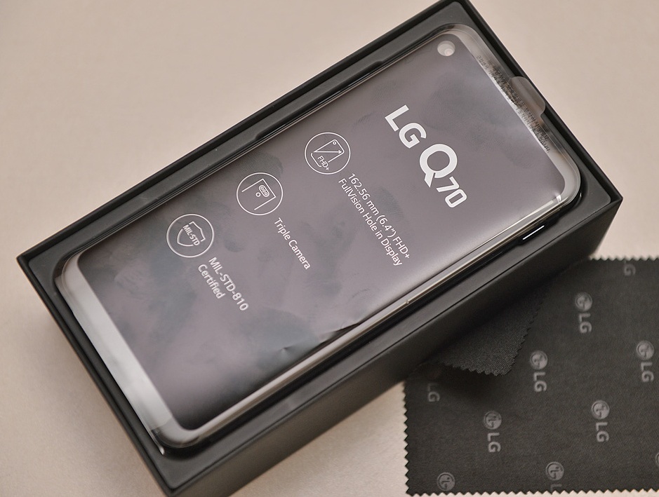 LG Q70 6.4 انچ IPS قسم کے ڈسپلے سے لیس ہے۔ 1080 x 2310 پکسلز، 81.4% اسکرین ٹو باڈی ریشو اور 18.5:9 فل ویژن اسپیکٹ ریشو۔ کلر ڈسپلے 16 ملین رنگوں تک۔ چمک اچھی ہے، 400 نٹس سے اوپر۔ یہ دیکھتے ہوئے کہ یہ ایک LCD ہے نہ کہ OLED، صارفین کو سورج کی روشنی میں رنگ دکھانے میں کچھ دقت ہوگی۔