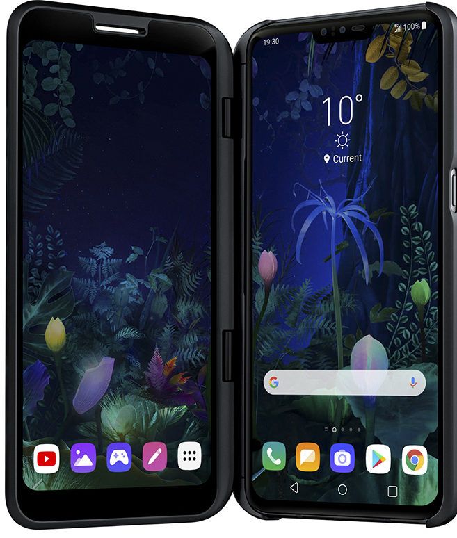 LG فولڈنگ اسمارٹ فونز جاری نہیں کرتا ہے، لیکن V50 کے لیے ایک ملکیتی ڈوئل اسکرین ڈیوائس ہے جو سائیڈ پر موجود رابطوں کے ذریعے مین فون سے جڑتی ہے۔ درحقیقت، یہ ایک اضافی مانیٹر ہے جس کی ترچھی لمبائی 6.2 انچ اور ریزولوشن 2160x1080 پکسلز ہے۔ ڈویلپرز تجویز کرتے ہیں کہ یہ مجموعہ صارفین کے لیے ایک ہی وقت میں متعدد ایپلی کیشنز کے ساتھ کام کرنا آسان بناتا ہے۔