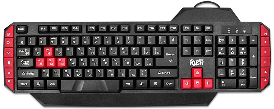 گیمرز کے لیے یہ وائرڈ ماڈل اپنے استعمال میں آسانی اور انتہائی پائیدار تعمیر کے ساتھ مقابلے سے الگ ہے۔ پی سی سے اس کا کنکشن USB سلاٹ کے ذریعے کیا جاتا ہے، اور تار کی لمبائی 1.8 میٹر ہے۔ بٹنوں میں روایتی مربع شکل کا عنصر ہوتا ہے، اور ان پر عہدہ اور علامتیں (RUS/ENG) سفید رنگ میں چھپی ہوتی ہیں۔