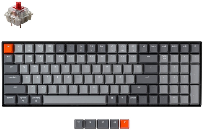 کی بورڈ کو چار قسم کے سوئچ میں سے ایک کے ساتھ فروخت کیا جاتا ہے، جو ان کے سپرش ردعمل میں مختلف ہوتا ہے۔ اس کٹ میں سوئچ کے لیے چار تبدیل کیے جانے والے ٹوپیاں، چابیاں ختم کرنے کے لیے ایک کلید، ہدایات اور ایک وارنٹی بک شامل ہے۔
