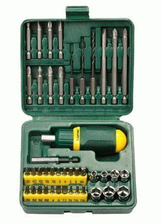 مینوفیکچرر کرافٹول کی طرف سے ایک سیٹ میں تالہ ساز اور کارپینٹری کے اوزار صارفین میں بہت مقبول ہیں۔ بٹس کی تعداد 0.25 انچ ہے، پیکیج میں 30 بٹس ہیں۔ تاہم، کارخانہ دار نے مشق کے ساتھ تھوڑا سا نظر انداز کیا، کیونکہ سوٹ کیس میں ان میں سے صرف تین ہیں. وہ دھات کے لیے ڈیزائن کیے گئے ہیں، لیکن معیار بھی مطلوبہ ہونے کے لیے بہت کچھ چھوڑ دیتا ہے۔ آرام دہ ایرگونومک ہینڈل اور سات بٹس 5 - 12 ملی میٹر کے ساتھ ایک ریورس ایبل سکریو ڈرایور بھی شامل ہے۔ صارفین اس سیٹ سے کافی خوش ہیں، لیکن اس میں مختلف قسم کی مشقیں بھی دیکھنا چاہیں گے۔