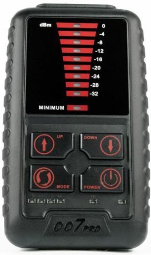 在检查场所是否存在无线电错误或监控摄像头时,防错误将有所帮助。没有抑制频率。平均重量 - 280 克。自主工作可以进行 90 分钟。电源来自电池克朗。套餐比较差。在搜索过程中获得肯定结果时,用户会收到声音、灯光和振动警报。