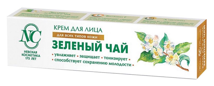 继续审查俄罗斯制造的产品,这是我们评级中预算最多的。商品的成本仅为60卢布,几乎不可能找到更便宜的面霜。该产品在网上商店和美容院均有销售,分布在各地。该产品以纸板箱形式出售,内含消费者信息和绿茶叶。里面是一个容量为 40 毫升的塑料管。